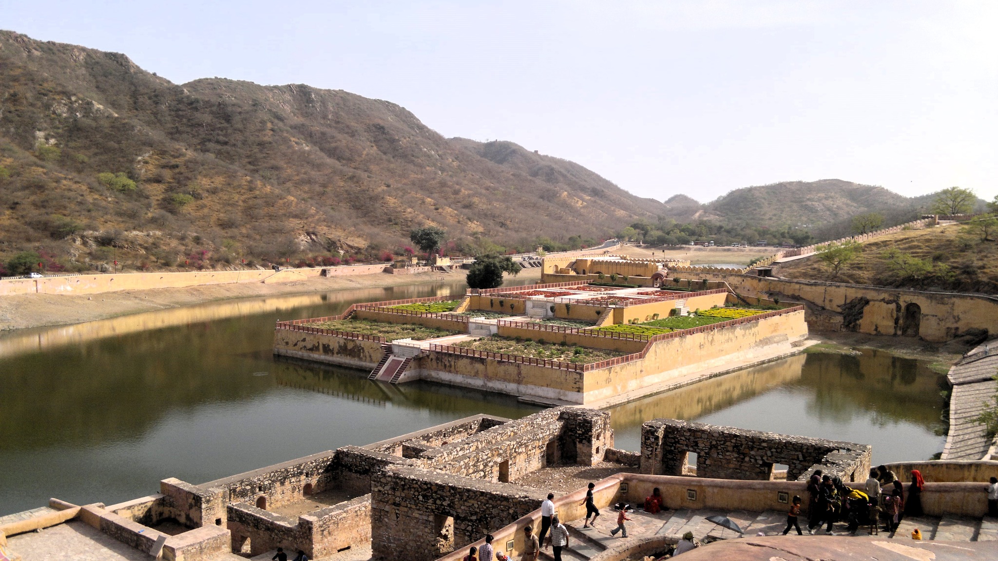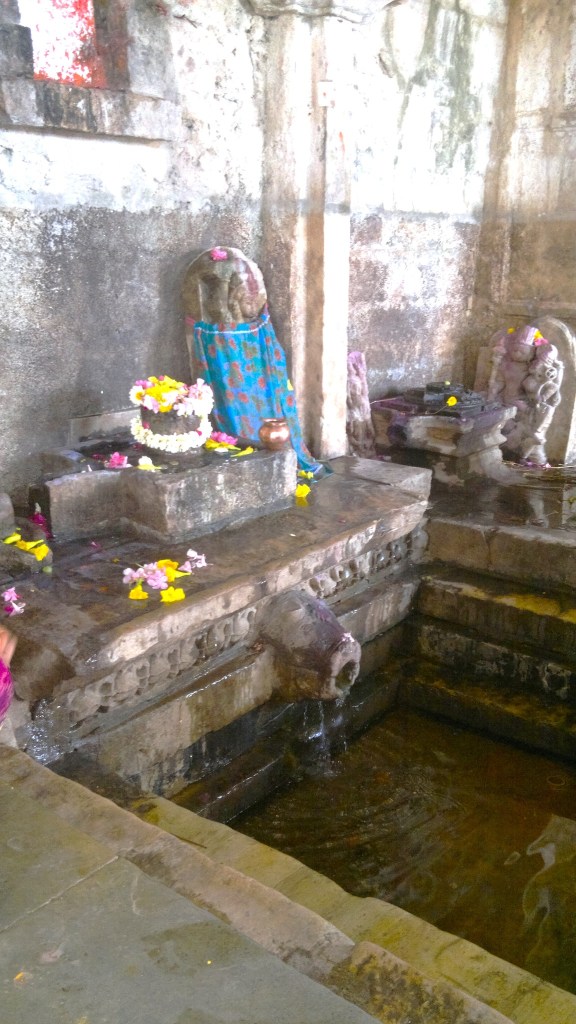 Getting down from the tower, I proceeded from beside the Jauhar place to Samadhishwara temple, which houses a three-faced Shiva idol. Behind the temple is the iconic water tank appearing in most circulated posters of Chittorgarh. Descending the steps I went to a crevice in the hillside from where emanates a water spring from an stone opening built in the form of a cow’s (Gau) head (mukh) filling up the water tank, thereby giving it the name Gaumukh Kund. From there, I got back on the autorickshaw and moved further south past a water tank to reach the Kalika Mata temple. Then further to the south, I stopped by the Padmini Palace, where a legend, albeit with no historical backing, of Ala-ud-din Khalji getting a glimpse of queen Padmini through the reflection on a mirror, is rooted in.