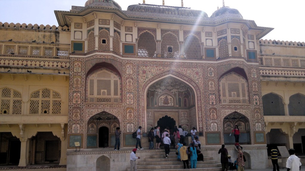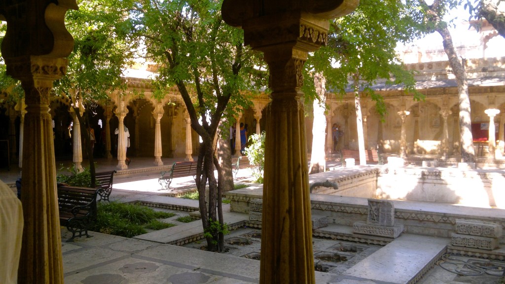 Again driving through the Aravallis, we re-entered Udaipur city, where I straightaway where we first stopped by the Fateh Sagar lake, and then proceeded to the City Palace where I dismissed the cab. The construction of City Palace on the bank of Pichola lake commenced in 1559 AD, when Rana Udai Singh II moved his capital from Chittorgarh to Udaipur on the advice of a hermit, much before the siege of Chittorgarh by Akbar in 1567-68. Successive rulers of Mewar, including Maharana Pratap and Maharana Amar Singh I, occupied palace adding more layers to it. The palace complex, built entirely in granite and marble, comprises components such as courtyards, palaces and balconies, with intricate mirror work, murals, marble work etc. are a fine representative of Rajput architecture.