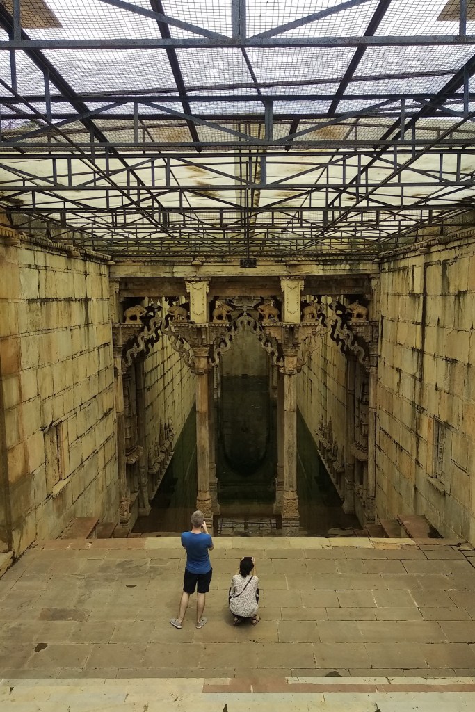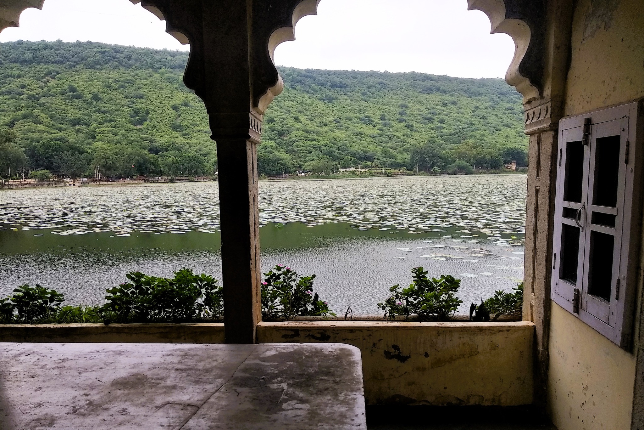 Following this, we made our way through the narrow village lanes to the more urban portion of the town, where we saw the Raniji ki Baori, a 17th century covered stepwell, that is 150 feet deep, and is fairly well-maintained and filled with water even now. Then, we proceeded to the Nawal Sagar lake, located on the outskirts, on the banks of which Rudyard Kipling spent some time in a modest but attractive bungalow. Afterwards, we saw the Chaurasi Khambon ki Chhatri or ’84-Pillared Cenotaph’, another 17th structure with a shivling at the centre of the space enclosed by the pillars.