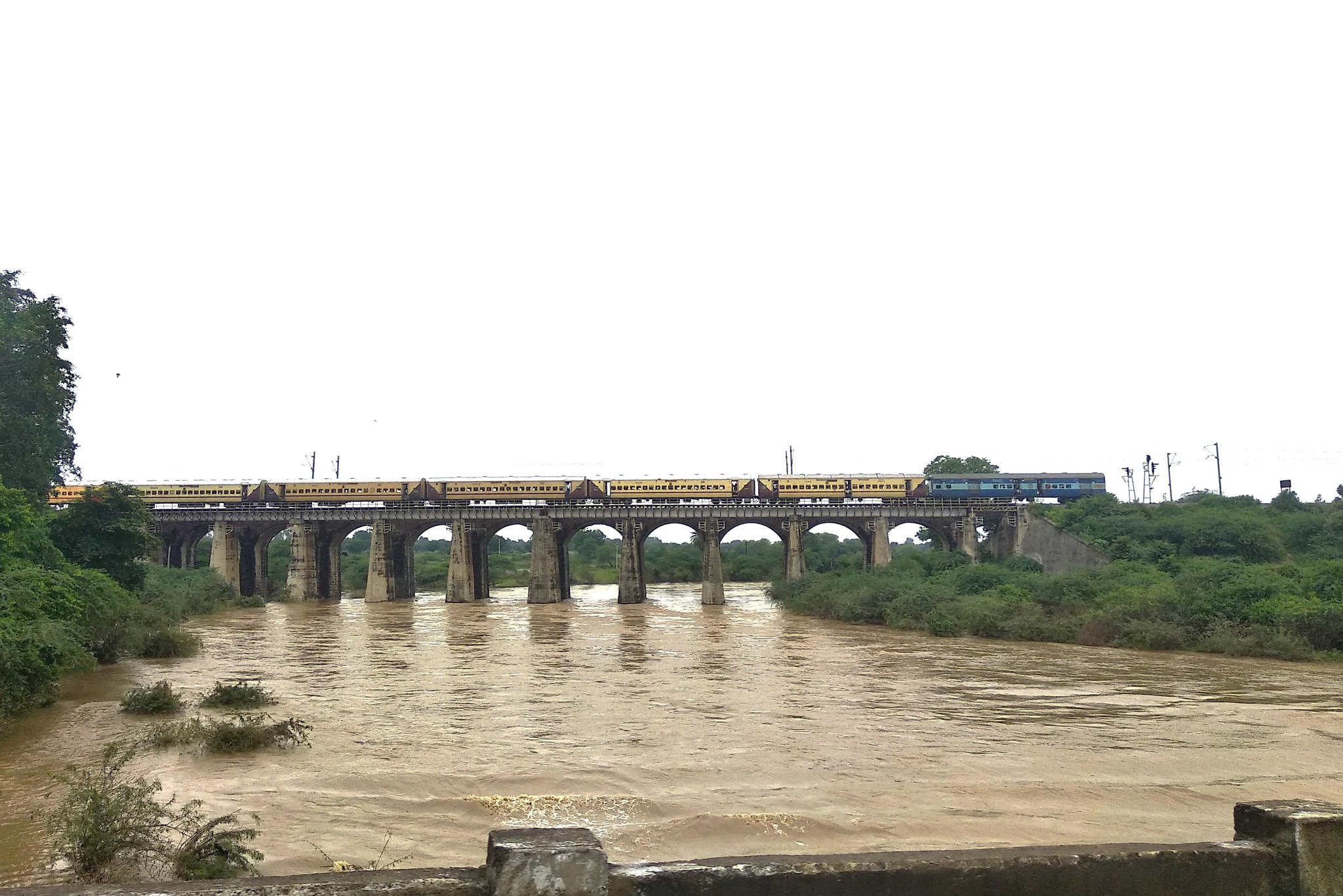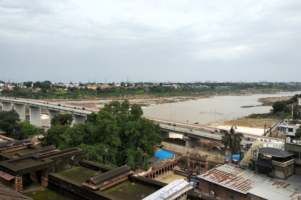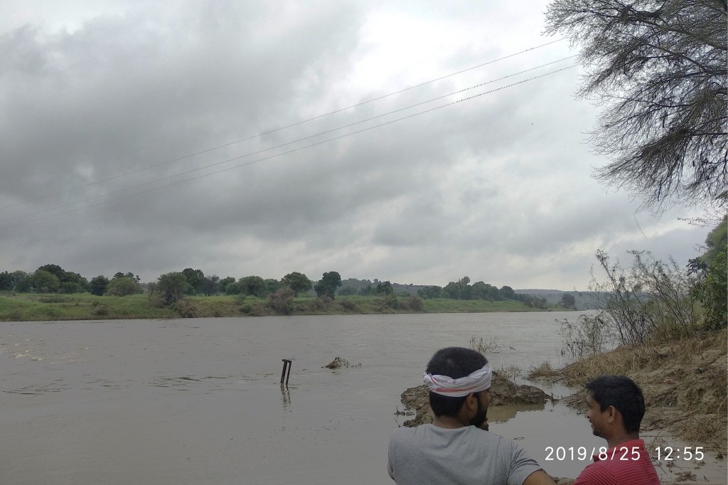 Then we rolled down a slope, and came face-to-face with the Ahu river, overflowing due to the rains, completely submerging the low bridge that connects the side we were on to the hillock that the fort stands on. With no signs of the rain and river water abating, we turned back, disappointed. It being only noon yet, we figured we could somewhat compensate for the lost opportunity, by exploring some other nearby place – that place turned out to be Jhalrapatan.