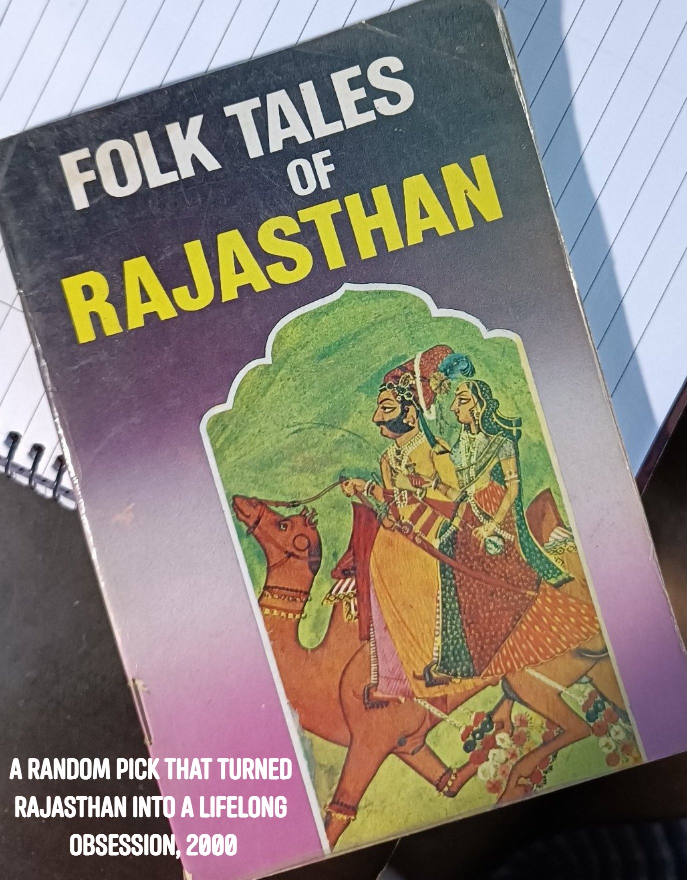Some years later as we were embarking on a train journey, Dad let me pick up a thin paperback from the book stall on the railway station- it was called ‘Folk Tales of Rajasthan’. While on that train, in my mind, Rajasthan turned into a place of magic, of kings, bards & princesses, of Pabuji, star-crossed lovers & clever thieves, of camels & shifting sands…I was enamoured.