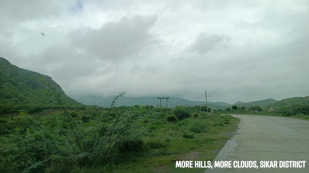 As always, it is rarely about the destination – and so off I went wandering through roads I had not trodden before, exploring a bit of the Aravallis in the Shekhawati region, while the sun and rain played hide and seek, and folds of hills lay in the distance in front and around me, their peaks crowned with fluffs of cloud.