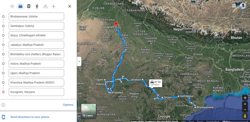 In late October, around Diwali, I drove my parents through a 3250+ km trip from Bhubaneswar to Gurgaon via Chhattisgarh and Madhya Pradesh.