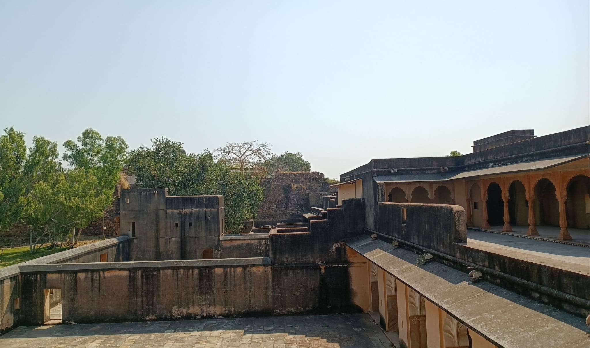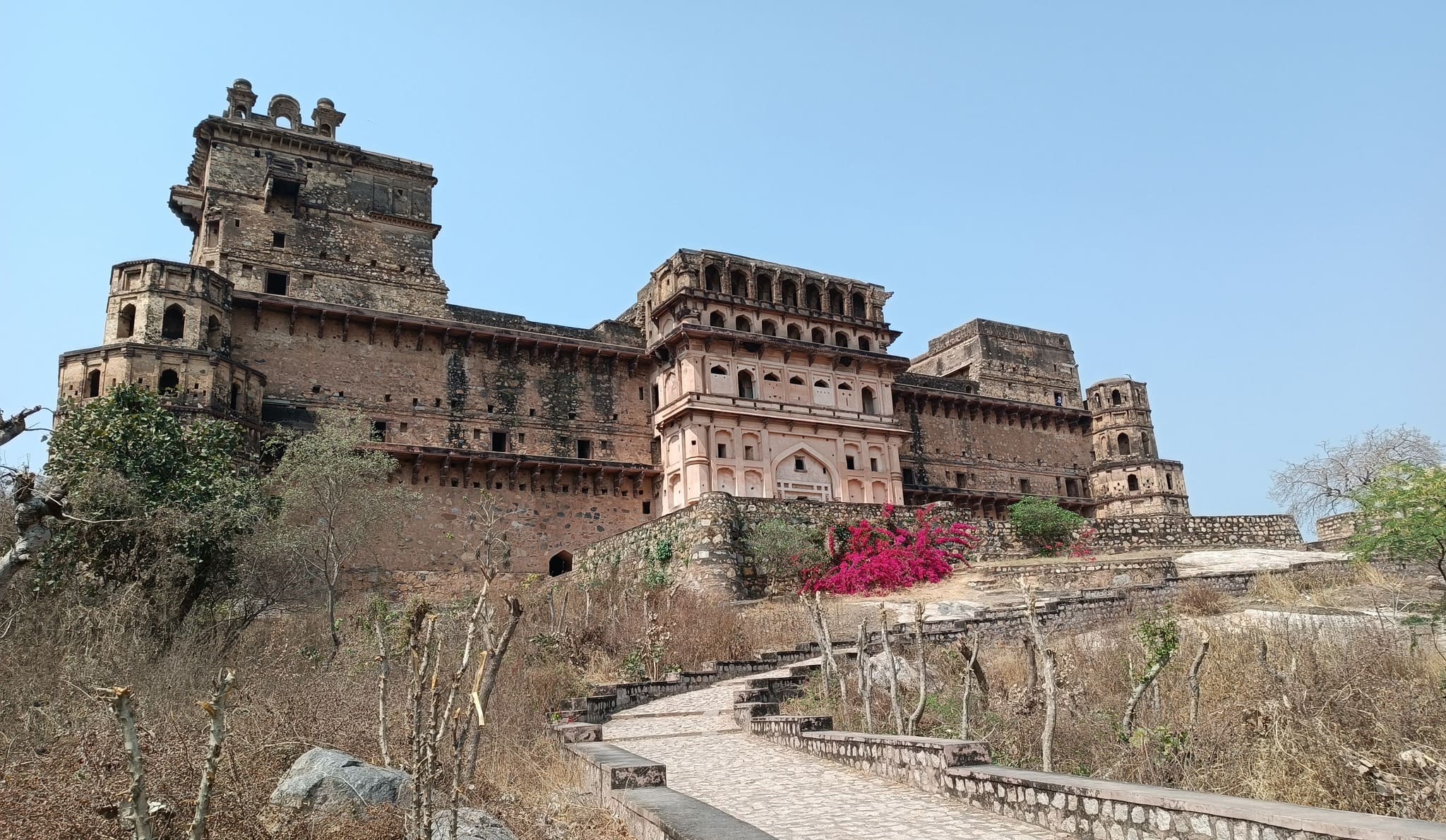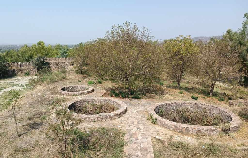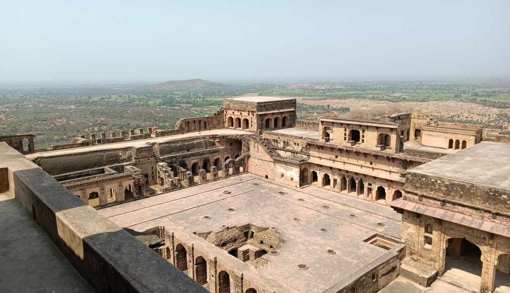A 12th century hill fort that also doubles up as a water fort, by virtue of lying on the confluence of 2 rivers, with one river winding around the hill supporting the fort, giving protection by water on 3 sides. The fort itself is akin to a ship with the watchtower called Ram Burj situated at the fort’s edge where standing feels as if standing on a ship’s bow. The fort ramparts afford views of the sparsely vegetated rocky surface of the hill with the aquamarine Kali Sindh flowing along the hill base on one side and of the Ahu river on the other side. This fort rounds up for me, the six hill forts of Rajasthan that constitute a UNESCO World Heritage Site series.