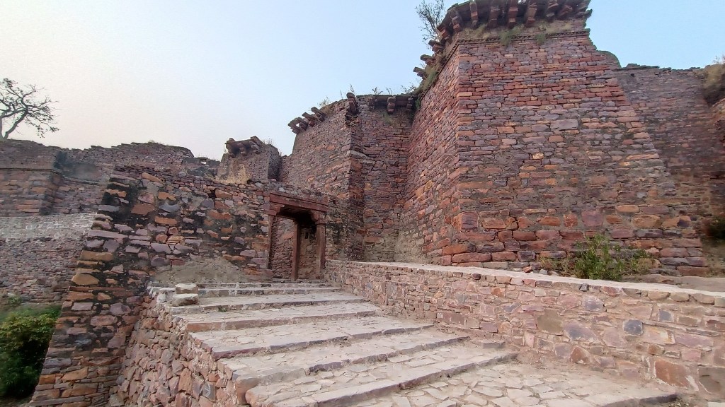 As I stood at the bottom of the long flight of stony steps, with the last group of people having already descended, I mulled over whether it would be a prudent idea to climb uphill at this hour. Figuring I did have a small window of sunlight, I virtually ran up the tall, sloping steps, stopping mostly to catch my breath at each hairpin bend and sometimes to steer clear of the langurs. In 10 minutes, I was within the fort precincts, passing through multiple arched gates after almost a kilometre-long climb. The panoramic view of the countryside was breathtaking from that height.