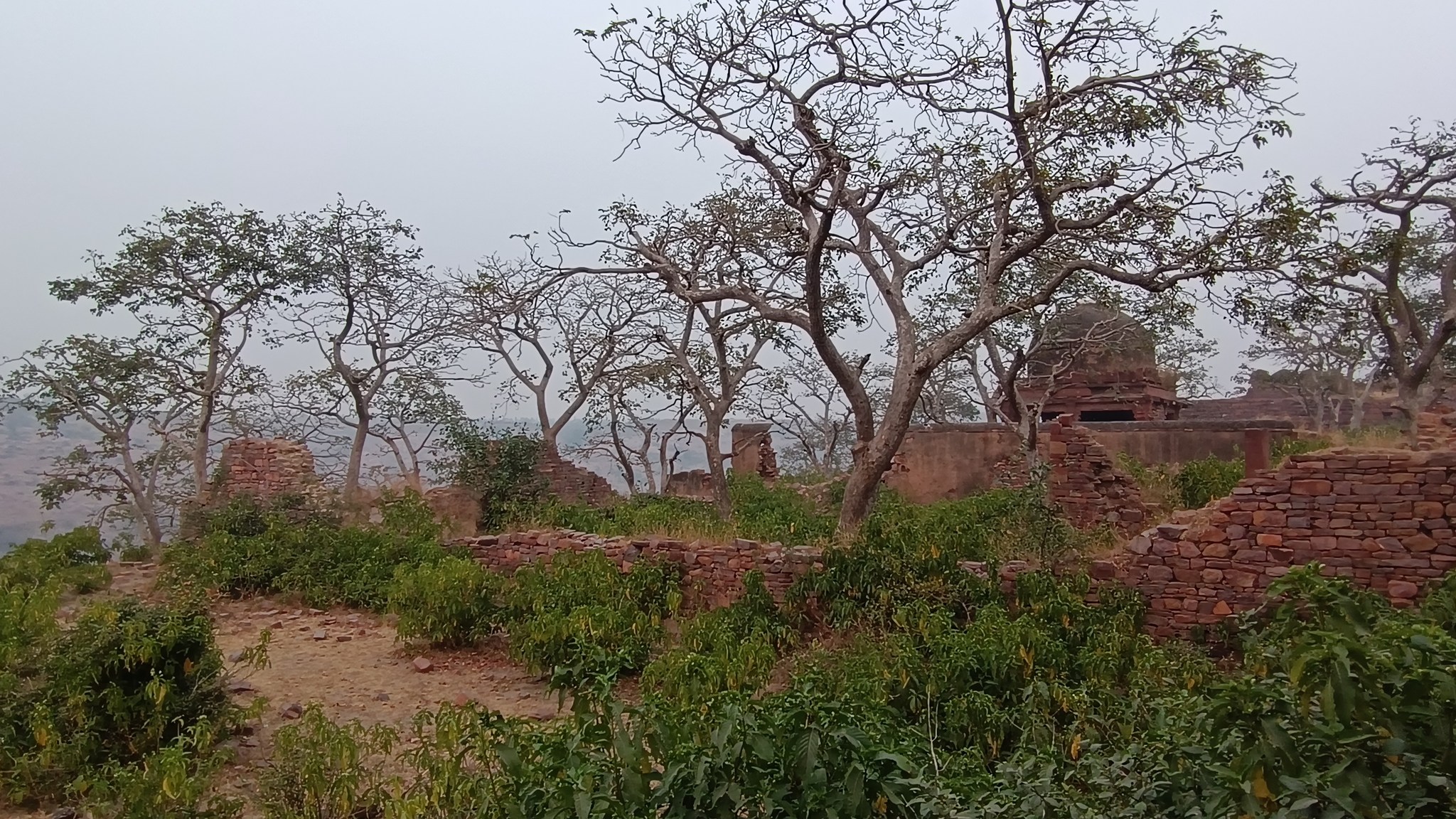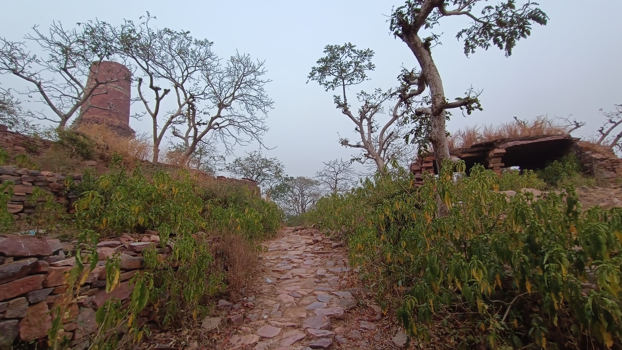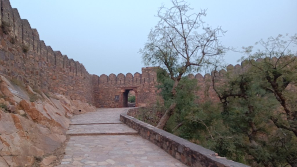 Somehow, circumstances lead me into situations where I land up in remote places on the verge of sundown. This time, it was at the base of a high cliff atop which sat the Bayana fort, with fortification walls stretching for miles and miles. I learned about Bayana Fort only a few months ago from a book called ‘Forts of Rajasthan’, and had been itching to set foot on it since. It was quarter to five on this mid-November evening when I finally arrived at my destination, having driven for an eternity, having been slowed down by narrow winding roads, interrupted by a political rally, and rocked by an undulating last-mile dirt road.