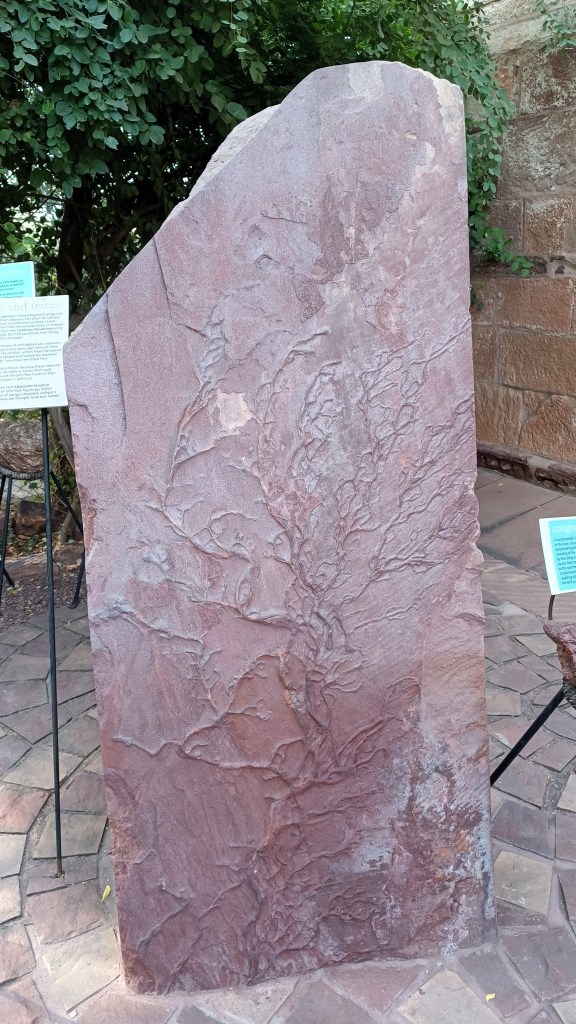 The park welcomes you with an assortment of rock sample exhibits, sourced from the western part of the subcontinent stretching from the Indus basin through the Thar desert to the Kachchh, with most from rock systems formed tens of millions years ago to more than a billion years ago. The most fascinating exhibit is a 635 million year old sample from the ‘Sonia Sandstone Formation’ near Jodhpur, containing ‘trace fossils’, which are traces of movements and burrows in the mud left behind by some of the earliest organisms which had no hard parts that could fossilize.