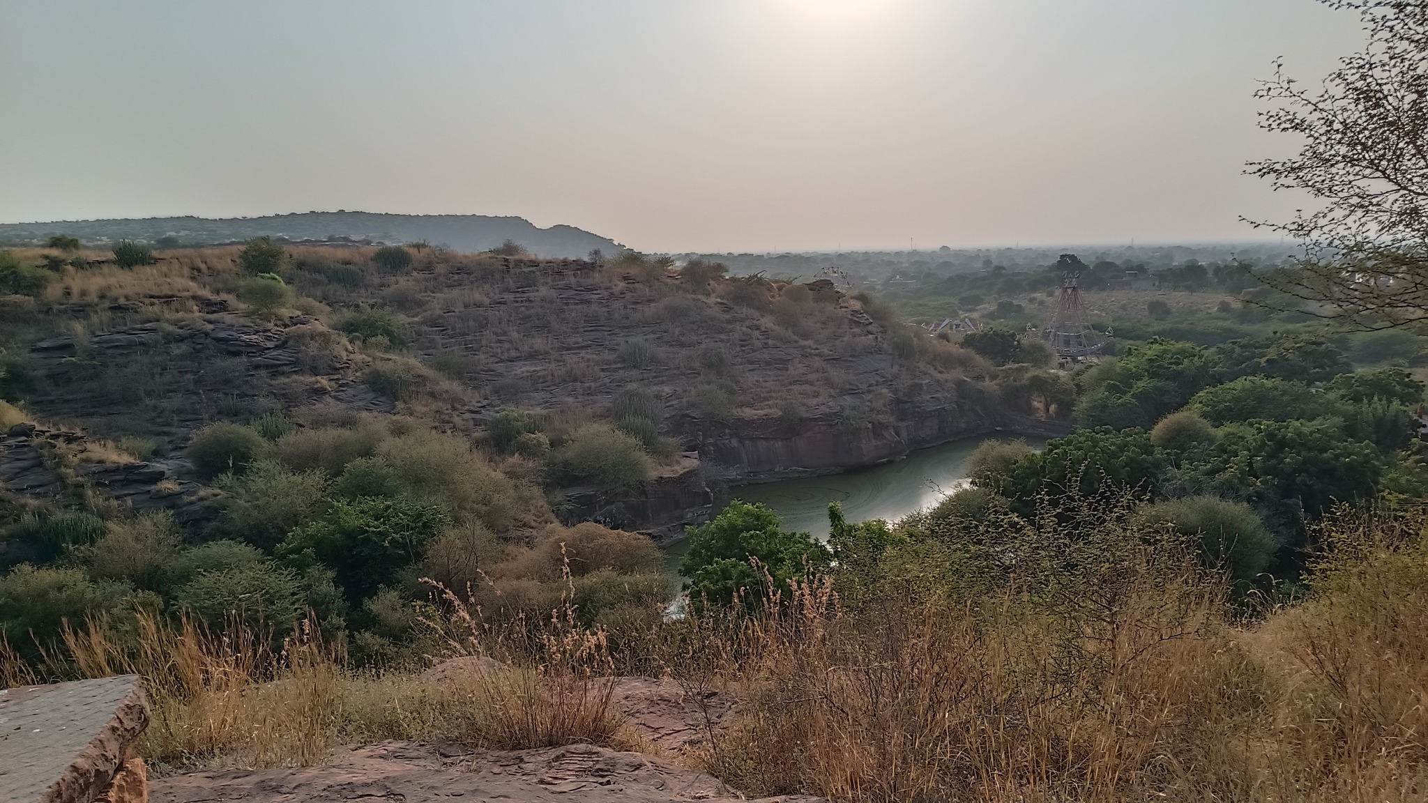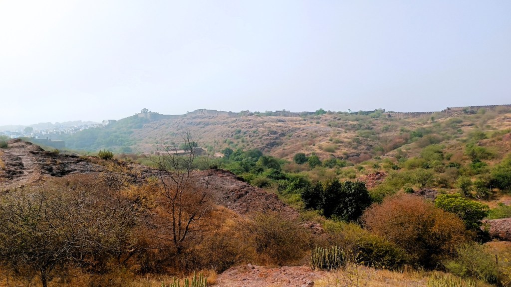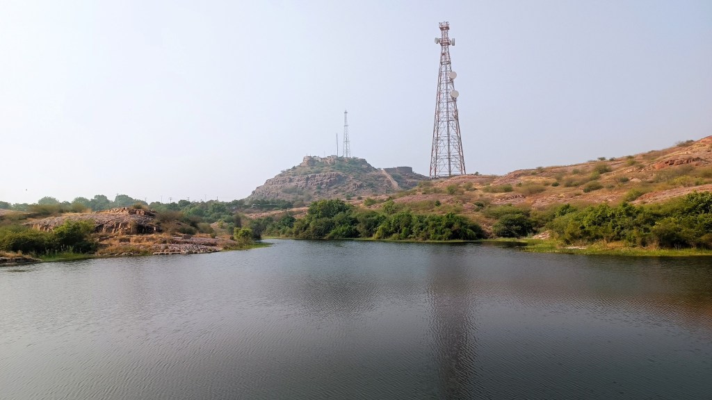 Another trail runs along the ancient city wall that also serves as a boundary wall for the park, and yet another trail meanders through the rewilded forest comprising more than 250 plant species. From most points of the park, one is treated to exhilarating views of the profile of the fort from various angles. My favorite location was from the edge of the Padamsar lake. Or was it from just below the foothills of the rhyolite hill on which the fort is located? I am confused.