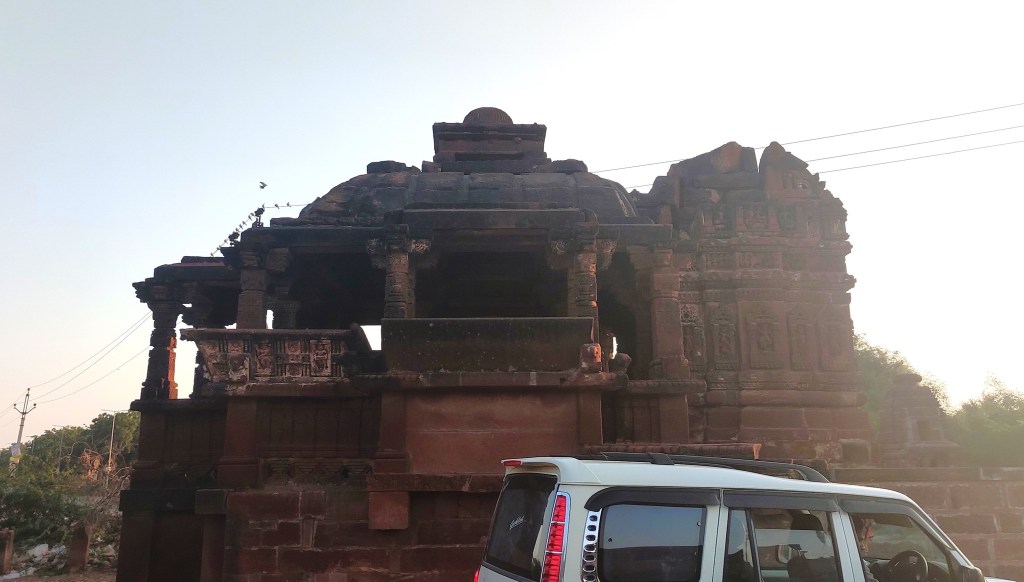 At Osian, we visited the Sachiya Mata temple – Sachiya Mata being the town deity, who as per Jain legend is the form of Chamunda that was turned vegeterian by Acharya Ratnaprabhasuri in 457 BCE. As a result, Sachiya Mata is worshipped also by Jains, and the temple itself has many Jain features. From the temple which is situated on a hillock affords a panoramic view of the landscape beyond the town, including the sand dunes located on the outskirts of the town. Apart from the Sachiya Mata temple, I managed to get a glimpse of a few other temples, including the ruins of the Harihara temple, Vishnu temple and Sun temple that were located on or in the vicinity of the main road.