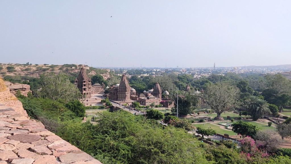 We checked in to the Om Heritage hotel that afforded an excellent view of the Mehrangarh fort from its rooftop. The plan for the day, drawn on the experience of my previous sole trip to Jodhpur, was set, and so, the first thing we did was hire for the whole day one of those large auto-rickshaws that could accommodate all five of us, and headed over to the Umaid Bhawan Palace. Our next stop after that was at Mandore Garden, the place that had me mesmerized in my previous trip to Jodhpur.